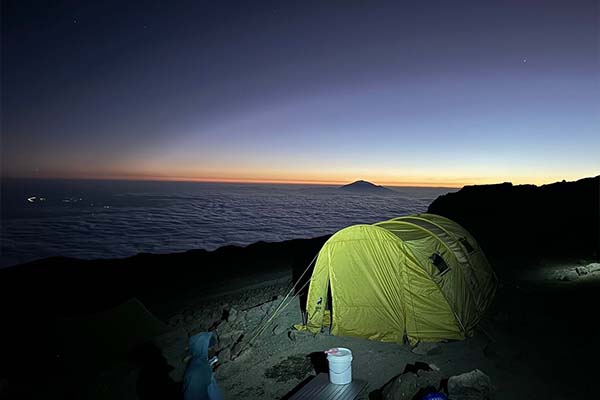 You will be awoken around 11:30 with hot tea and biscuits and will then begin the steep incline up the slopes of Kibo under the cover of darkness. Your first check-point is Hans Meyer Cave where you will take a short break. The climb steepens as you approach Gilman’s Point (5,681 meters), which will be around 5-6 hours after departing School Hut.